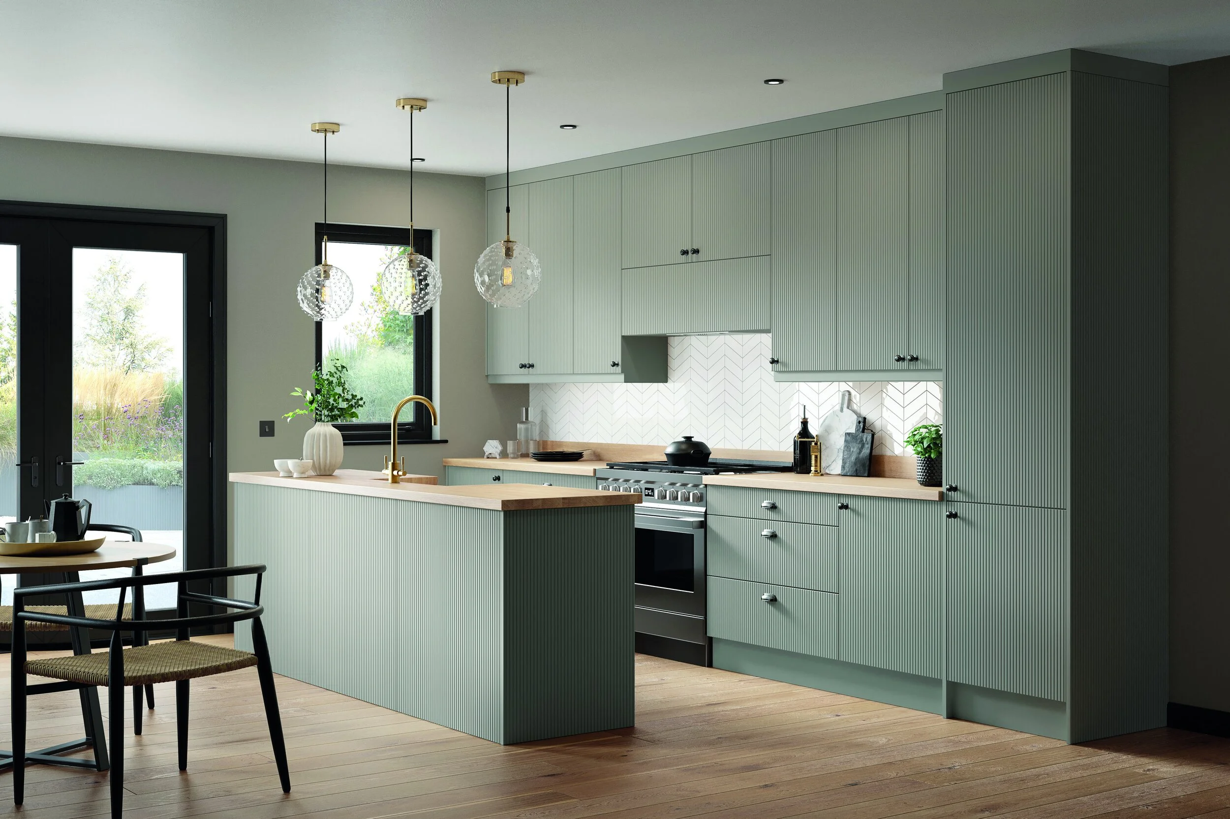 All of these doors are custom made to any size you require, that means these doors will fit even the most awkward kitchen and bedroom spaces. They are available in solid colour oak-grained, wood effect finishes and also a super matt finish. Each door has a different groove spacing depending on your desired look and also to suit the size of your space. If you have a larger room you would benefit using Mila with larger spacing. Oliva would work well in smaller spaces.
